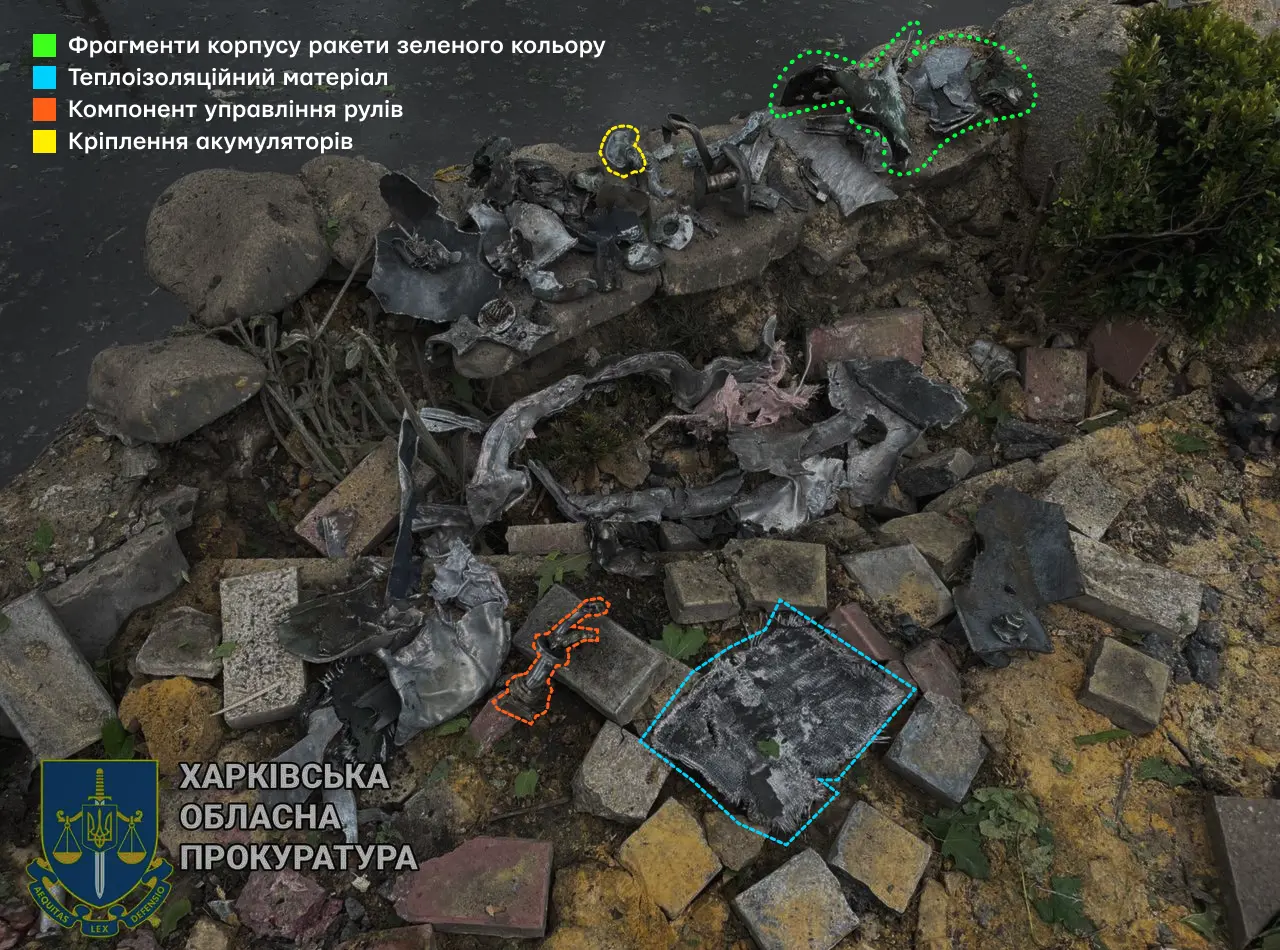 [207] На фотографії уламків ракети, опублікованій Національною поліцією України, видно хвостову частину крилатої ракети, запущеної з ракетного комплексу «Іскандер» (ракети 9М727 / 9М728 / 9М729). Див. Національна поліція України / 7 людей загинуло і 81 поранено внаслідок російської атаки на Покровськ [@UA_National_Police], (08.08.2023), Telegram. URL: https://archive.ph/Z8tOI (Дата звернення: 20.09.2024).