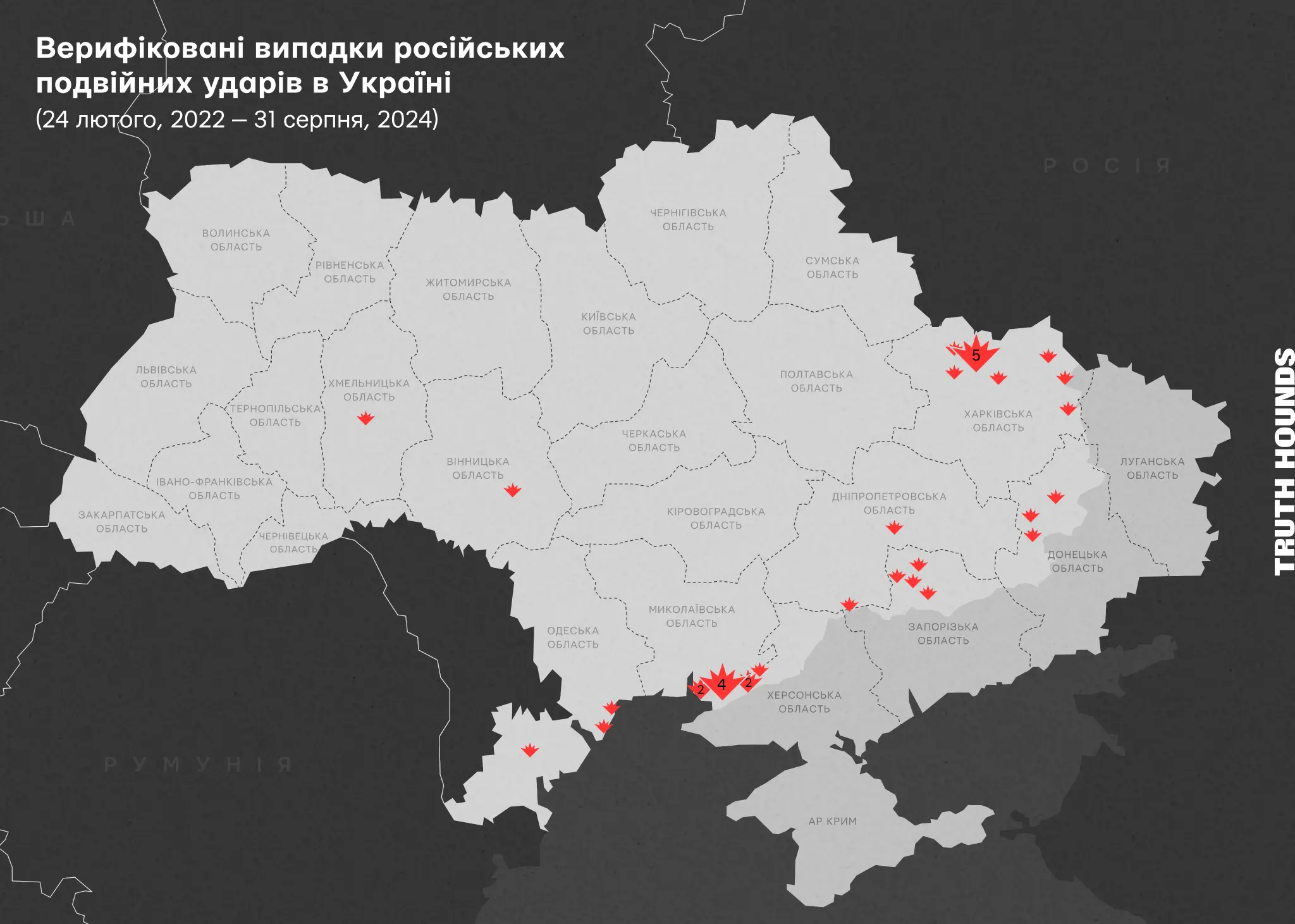 Загальна ж кількість відстежених Truth Hounds інцидентів, що мають ознаки подвійних ударів, перевищує 60. До цього числа входять також ті випадки, коли не вдалося підтвердити хоча б один із критеріїв верифікації, описаних вище.