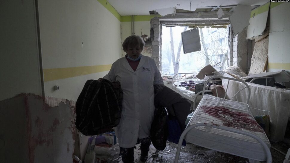 демонструє фото зі зруйнованої лікарні в Маріуполі, 11.03.2022