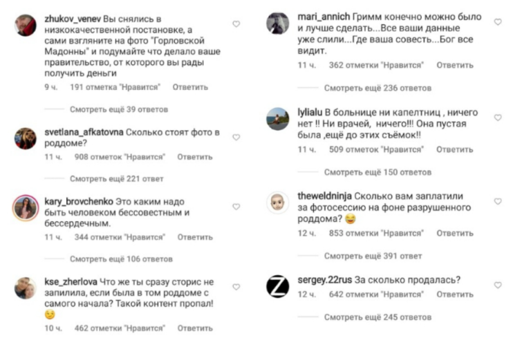 Коментарі в Instagram-сторінці Маріанни Підгурської (Вишемірської)