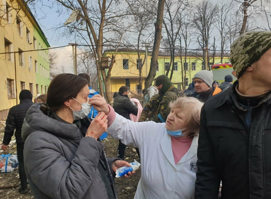 Маріуполь, під який потрапили місцева лікарня КНП «Маріупольське територіальне медичне об’єднання здоров’я дитини та жінки» з пологовим будинком при ній на пр. Миру, 80. Повідомлено про поранення 17 осіб – діти, породіллі, лікарі, – а також смерть немовляти в результаті удару.