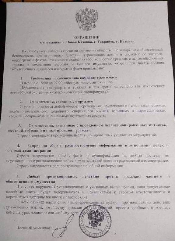 Розпорядження «військового коменданта Херсонської народної республіки»