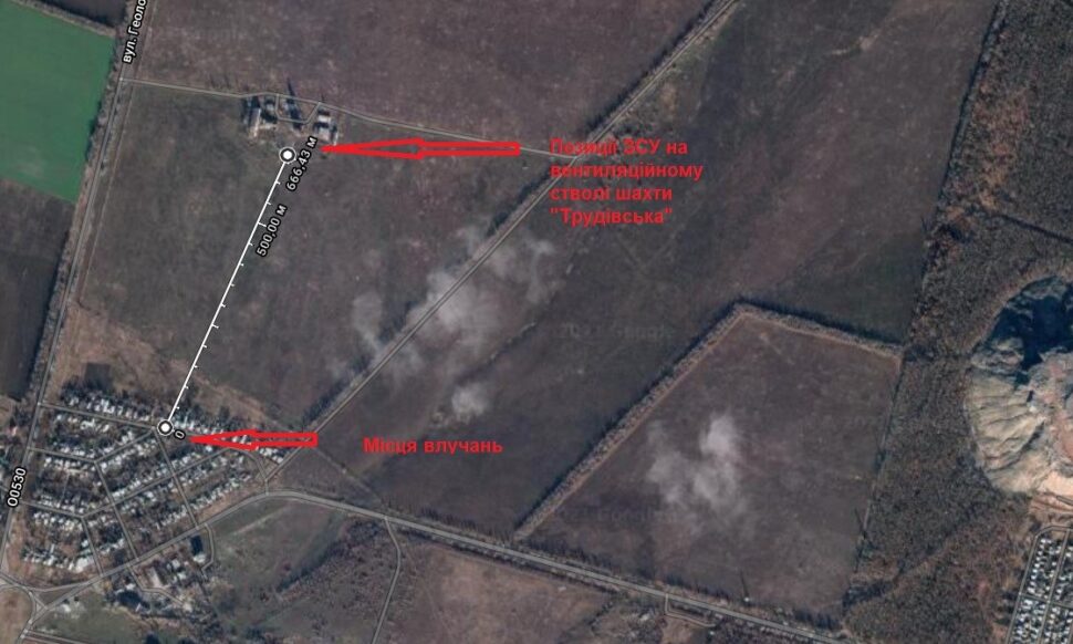 Свідки обстрілу повідомили кілька важливих деталей. По-перше, те, що в бік позицій т.зв. “ДНР” з боку позицій ЗСУ того ж дня вівся вогонь – спершу о третій дня стріляли з території колишнього обласного госпіталю для ветеранів, що знаходиться на околиці Мар’їнки у нежилій зоні, потім – ближче до 17-00 вогонь зі стрілкової зброї та гармати БМП зафіксували з лісосмуги, що над дорогою Мар’їнка-Красногорівка, неподалік позицій ВСУ, розташованих у полі на території вентиляційного виходу шахти “Трудівська” (див. супутникові знімки з позначеннями в розділі 4).