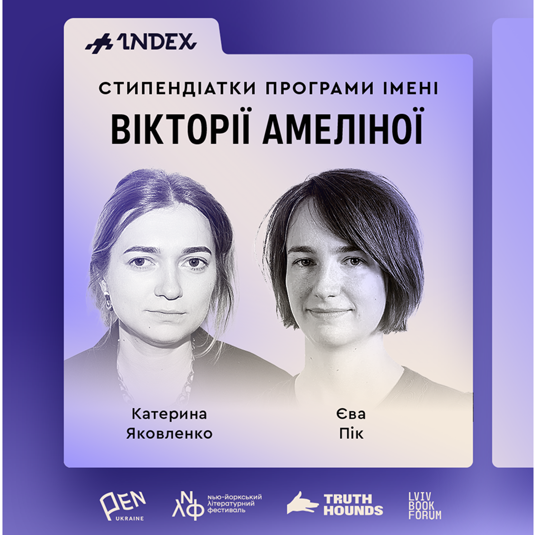 Цьогоріч INDEX у партнерстві з Українським ПЕН, Нью-Йоркським літературним фестивалем, Truth Hounds і Lviv BookForum вітатиме перших лауреаток Стипендійної програми імені Вікторії Амеліної.