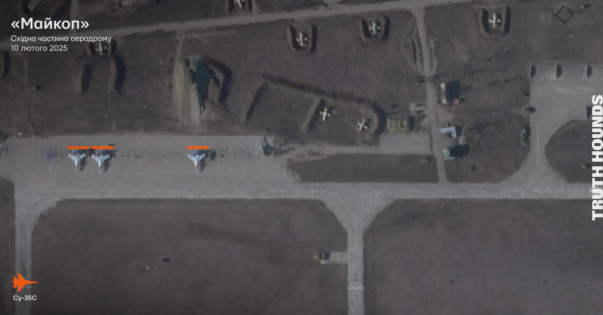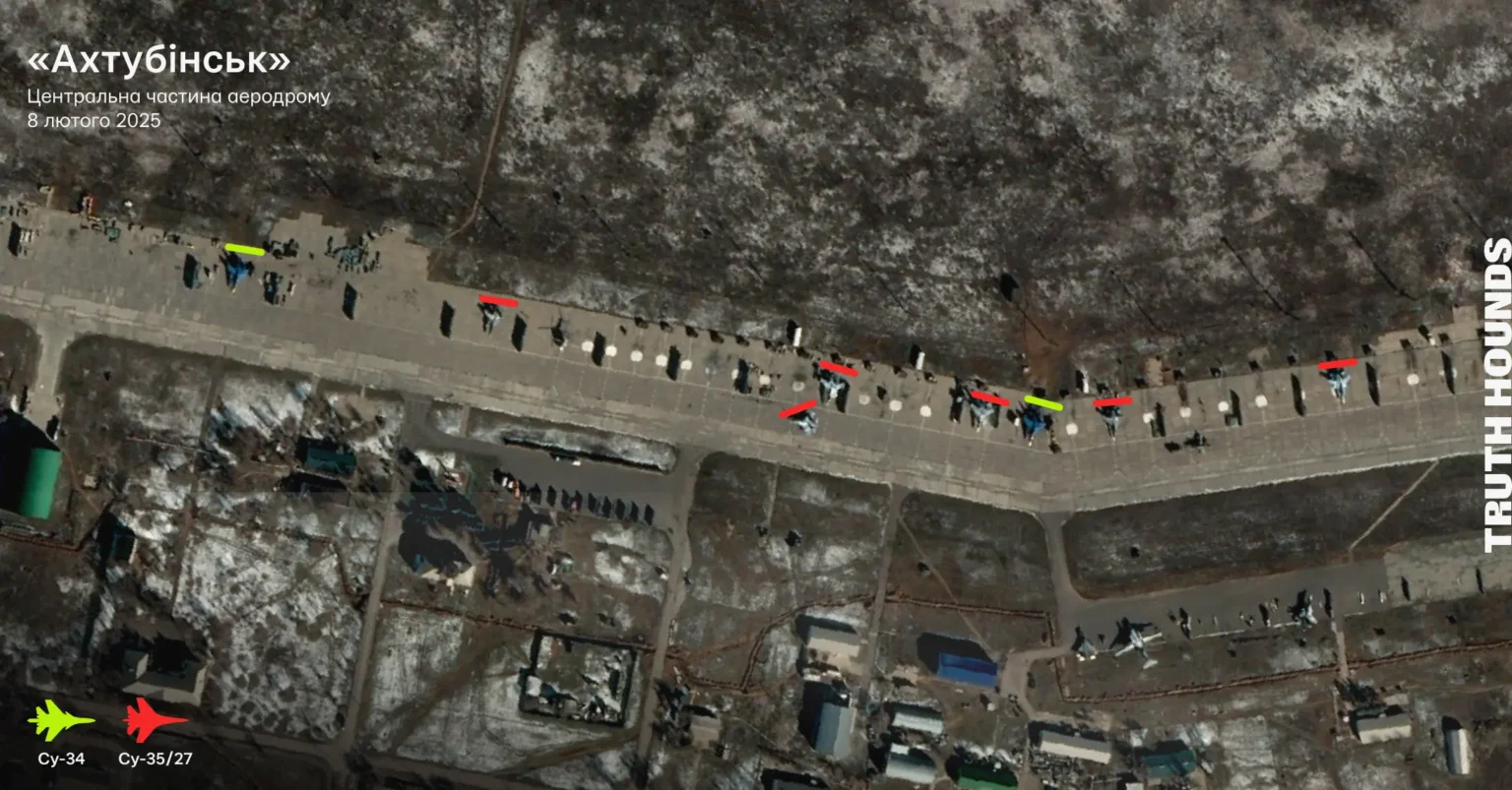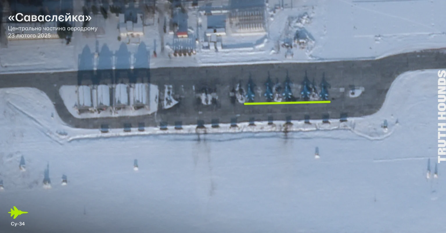 - Команда Truth Hounds проаналізувала високоякісні знімки аеродрому «Бутурліновка» від 13 січня 2025 та 17 лютого 2025 року. Також були проаналізовані низькоякісні знімки супутника Sentinel-2 від 22 січня 2025 року та 8 лютого 2025 року. На всіх супутникових знімках немає активності бомбардувальників Су-34.