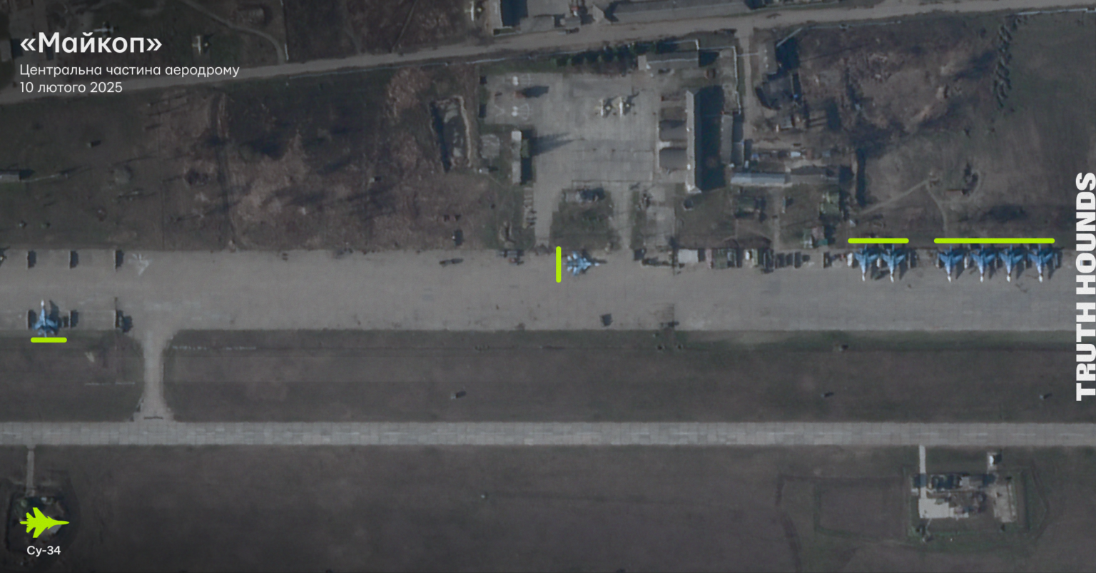 За такого припущення, увагу треба звертати на аеродроми, де базувалися Су-34 на момент удару 1 лютого 2025 року і які використовують для ударів по Україні[89]. Це аеродроми «Майкоп», Республіка Адигея; «Маріновка», Волгоградська область; «Саваслєйка», Нижньогородська область; «Моздок», Північна Осетія; «Ахтубінськ», Астраханська область; «Борисоглєбськ», Воронезька область, та «Липецьк», Липецька область.