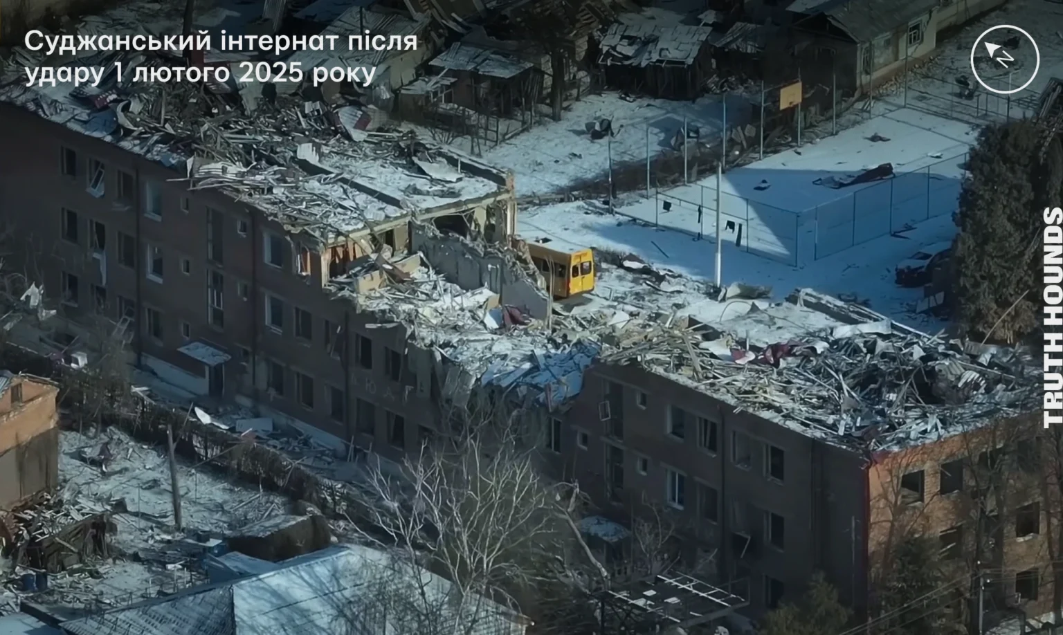 Стоп-кадр з відео наближеної зйомки Суджанського інтернату після 01.02.2025[71]