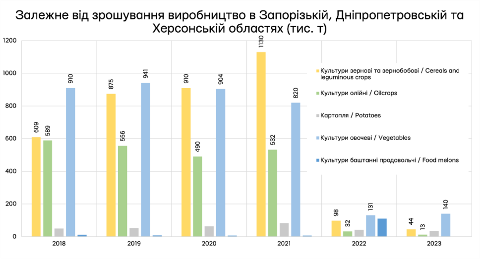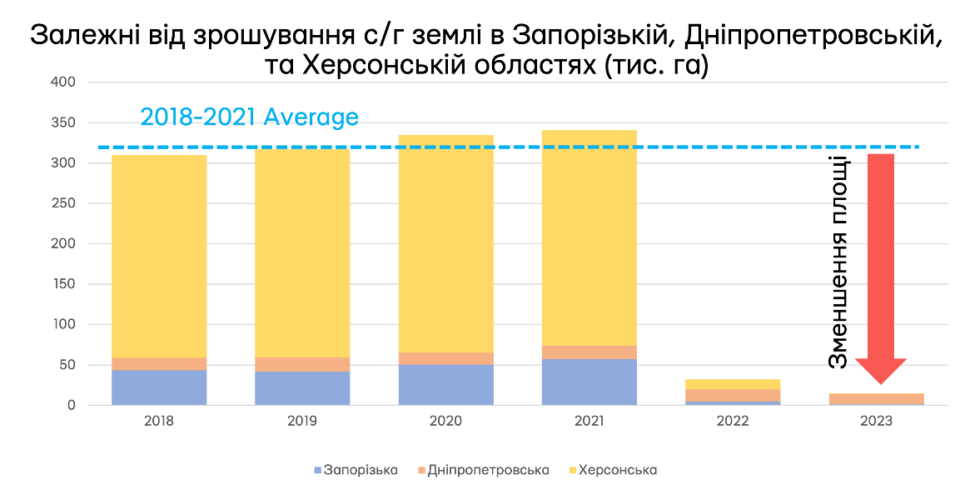 Усі області характеризуються посушливим кліматом і значною мірою залежать від іригаційних систем для ведення сільського господарства. Ці системи переважно беруть воду з річки Дніпро, що підкреслює сильну залежність областей від якості й чистоти води в річці. Крім того, вода з Дніпра забезпечує питною водою громади в цих областях, що показує критичне значення річки для підтримання як сільського господарства, так і життєдіяльності людей у цих посушливих зонах.