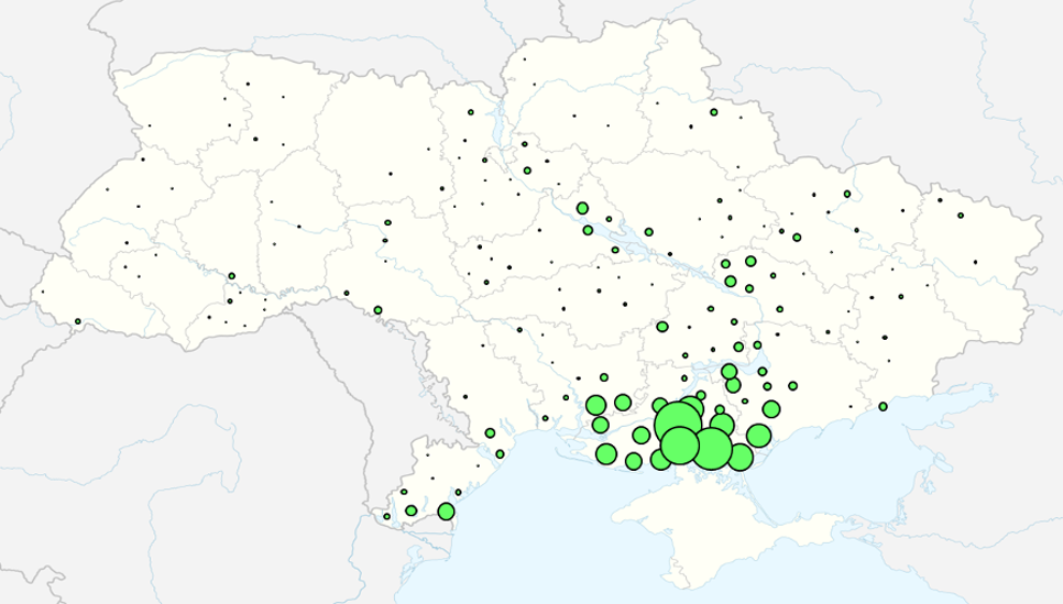 До повномасштабного вторгнення Росії в Україну[51] міста Херсон і Миколаїв слугували ключовими логістичними центрами для експорту зерна завдяки річковим портам. Продукти рослинного походження домінують в експорті з цих регіонів[52] і постачаються на ринки в Європі, Азії та Африці[53]. Однак окупація і бойові дії, що досі тривають, значно зменшили і площі оброблюваних земель, і можливості регіону експортувати сільськогосподарську продукцію морем. Як наслідок, вартість експорту відчутно зросла[54].