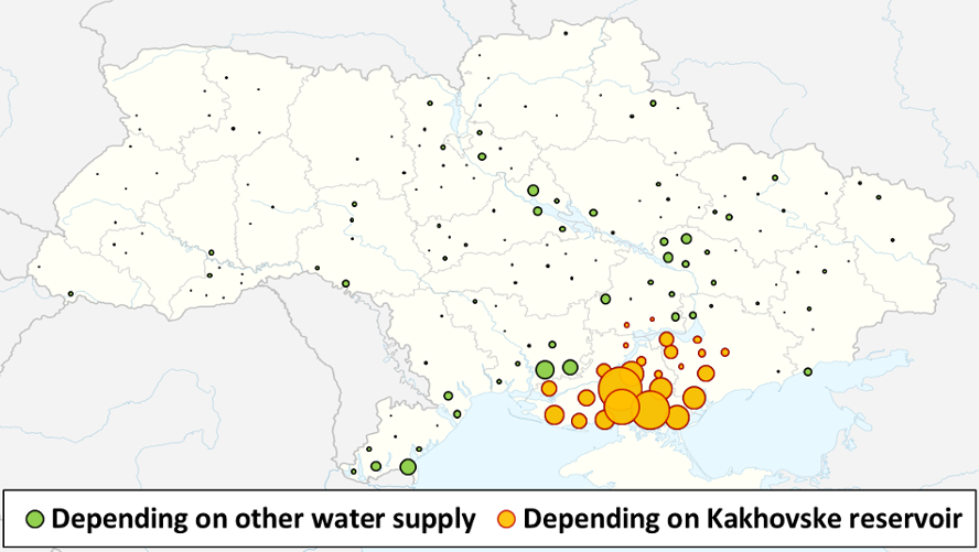 Водночас із будівництвом гідроелектростанції було створено Каховське водосховище, відоме серед місцевих жителів як «Каховське море» — друге за площею (2155 км²) і найбільше за об’ємом води (18,18 км³) водосховище в Україні[11]. Воно розташоване на території трьох областей України: Запорізької, Дніпропетровської та Херсонської, та простягається на довжину 240 кілометрів. Водосховище було основним джерелом питної води для деяких селищ у регіоні, відігравало ключову роль у зрошуванні майже 6 000 квадратних кілометрів полів[12], а також подавало воду в басейн-охолоджувач на Запорізькій атомній електростанції, щоб усувати залишкове тепло від реакторів і використаного ядерного палива[13].