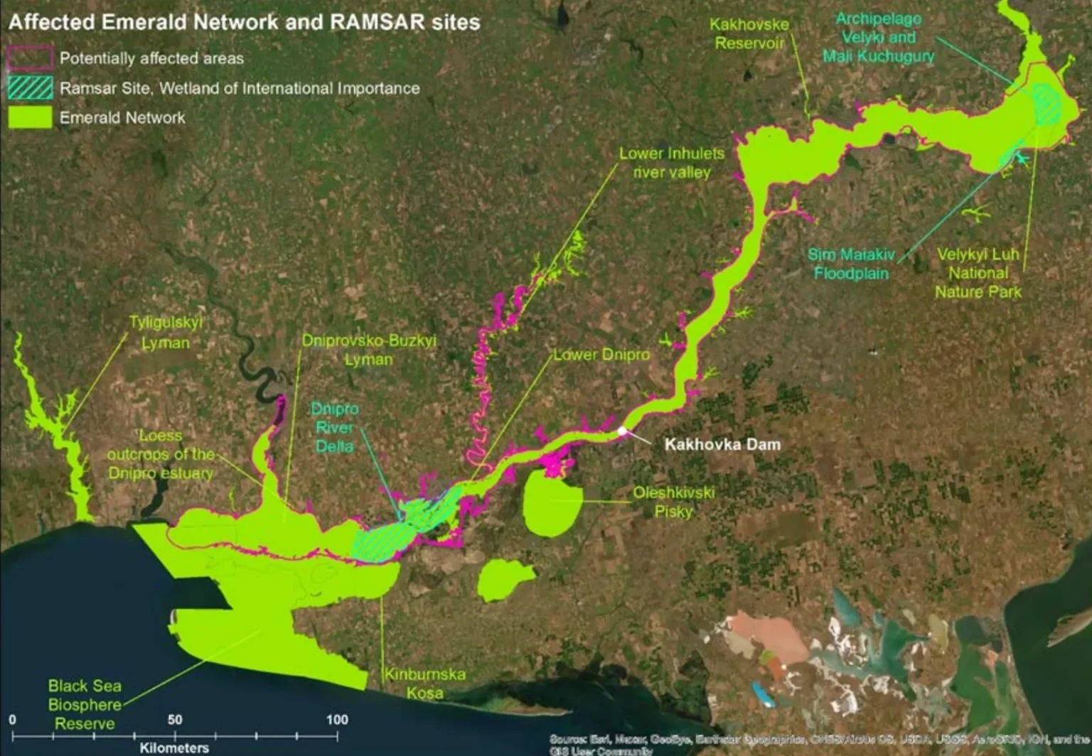 Руйнування Каховської ГЕС є однією з найскладніших подій, яку кожен учасник цього звіту коли-небудь намагався проаналізувати. Ускладнює ситуацію те, що гребля є опорою колосальної гідравлічної системи, яка охоплює водосховище (2155 км²) та мережу зрошувальних каналів, що покривають південь України. Ця система була «імплантована» в природне середовище, трансформуючи річку Дніпро та суміжні екосистеми на благо людини. Усунення цієї опори через навмисне руйнування греблі призвело до колапсу гідравлічної системи, знищення того, що стало частиною природного середовища. Наслідки цієї катастрофи, що поширюються на тисячі квадратних кілометрів, стали очевидними за рік, що минув, і, ймовірно, будуть зберігатися протягом невизначеного періоду.