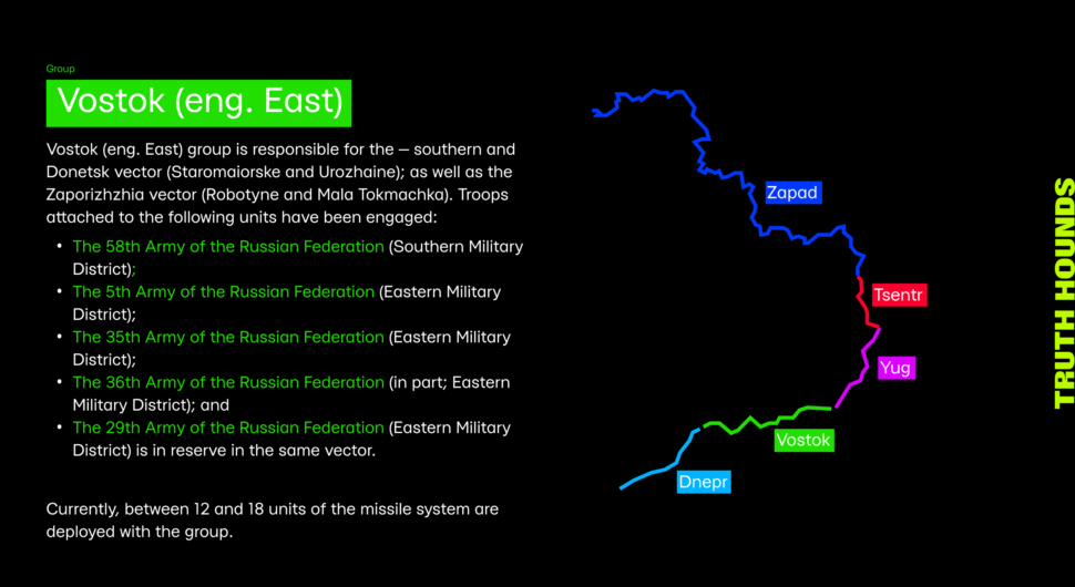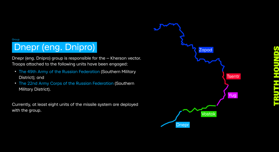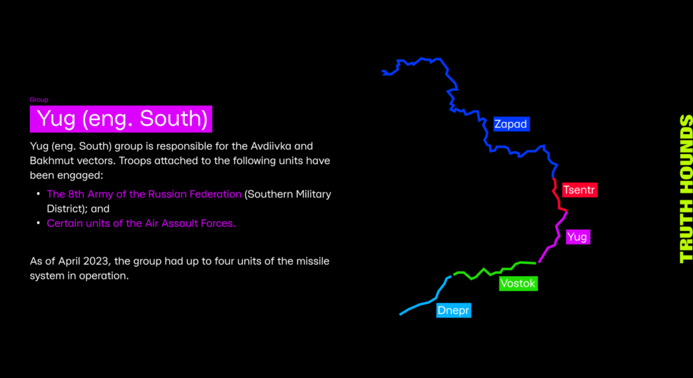 The established facts indicate that the missiles were launched from a southeasterly direction in relation to the affected localities, an area of responsibility for the Southern Military District of the Russian Armed Forces. There are only four units in this area armed with Iskander missile systems. However, having analysed their locations and the areas of hostilities at the moment of the attack, the list of potential perpetrators was narrowed down to a single unit — the 47th Missile Brigade of the 8th General Troops Army of the Russian Armed Forces, under the command of Colonel Vitaliy Bobyr.