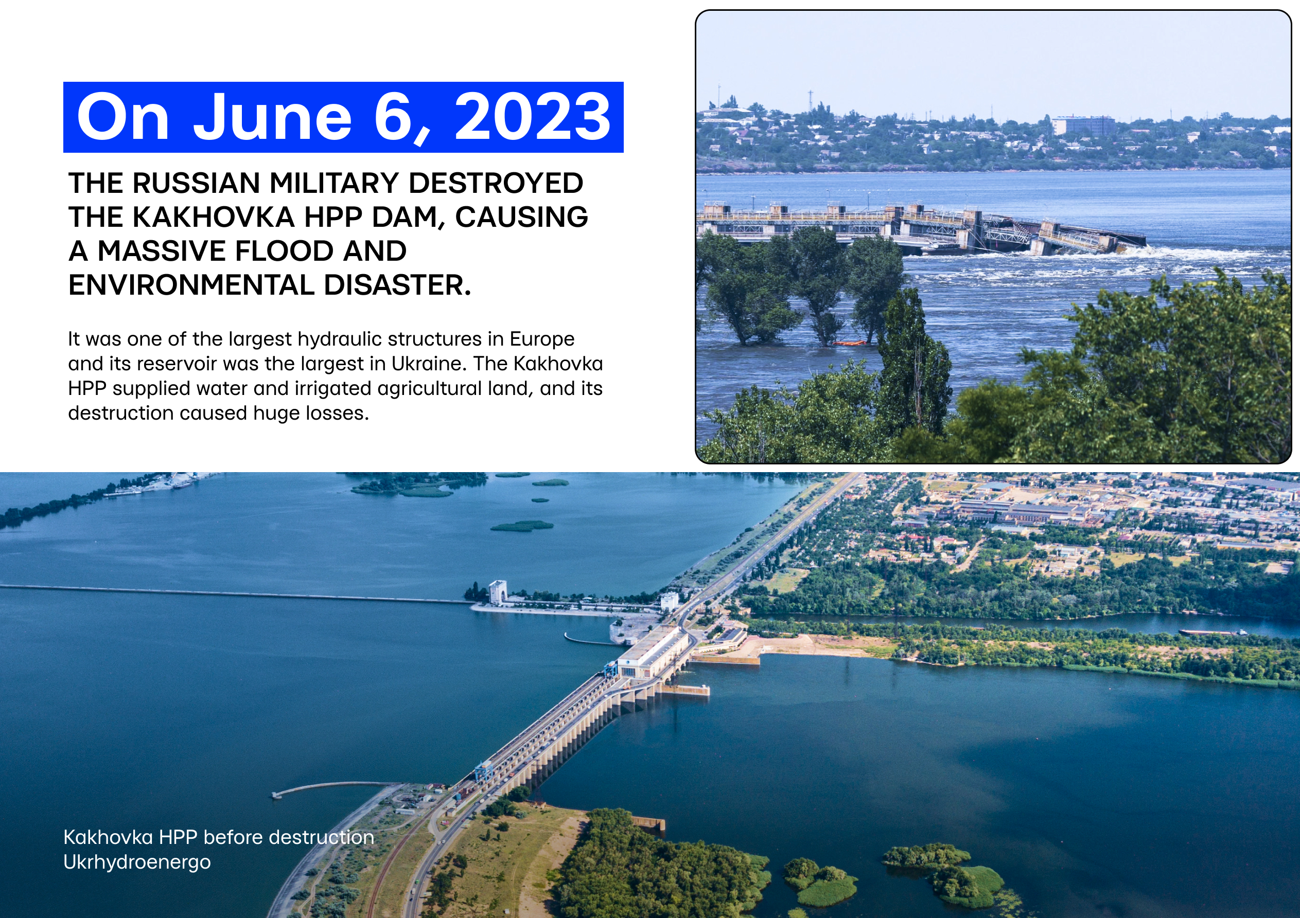 In 2024, Truth Hounds (TH) and Project Expedite Justice (PEJ) released a comprehensive study on the destruction of the Kakhovka Hydroelectric Power Plant (HPP) and the causes, and consequences of the dam explosion. The Kakhovka Dam and Reservoir were critical to southern Ukraine for power generation, water supply, and agricultural irrigation. They played a key role in supporting the region’s economy, agricultural sector, and energy stability. The destruction of the dam caused an environmental disaster, widespread flooding, and a water supply crisis.