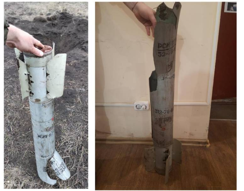 We assume that most likely the city was attacked using the rockets of MLRS GRAD. However, one should keep in mind that the Armed Forces of the Russian Federation have extended range rockets (up to 40 km)16 in their arsenal of free rockets, which can be used to attack with fire from remote positions by using another launch rocket system – MLRS Tornado. The photos of fragments and points of impact, including typical patterns of fragmentation spray, allow for establishing only the type of the rounds used, namely high explosive fragmentation rounds. The shortage of data prevents us from the establishing a more accurate nomenclature, as the photos do not show any marks or labels on the bodies of the rounds. The general characteristics of the rockets of this type (appearance, calibre, length, warhead type — everything, except the range) of different nomenclatures, overall, are the same. One therefore shouldn`t reject the possibility that the extended range rockets (up to 40 km) 9М521 or 9М522 with MLRS Tornado launchers could have been used.